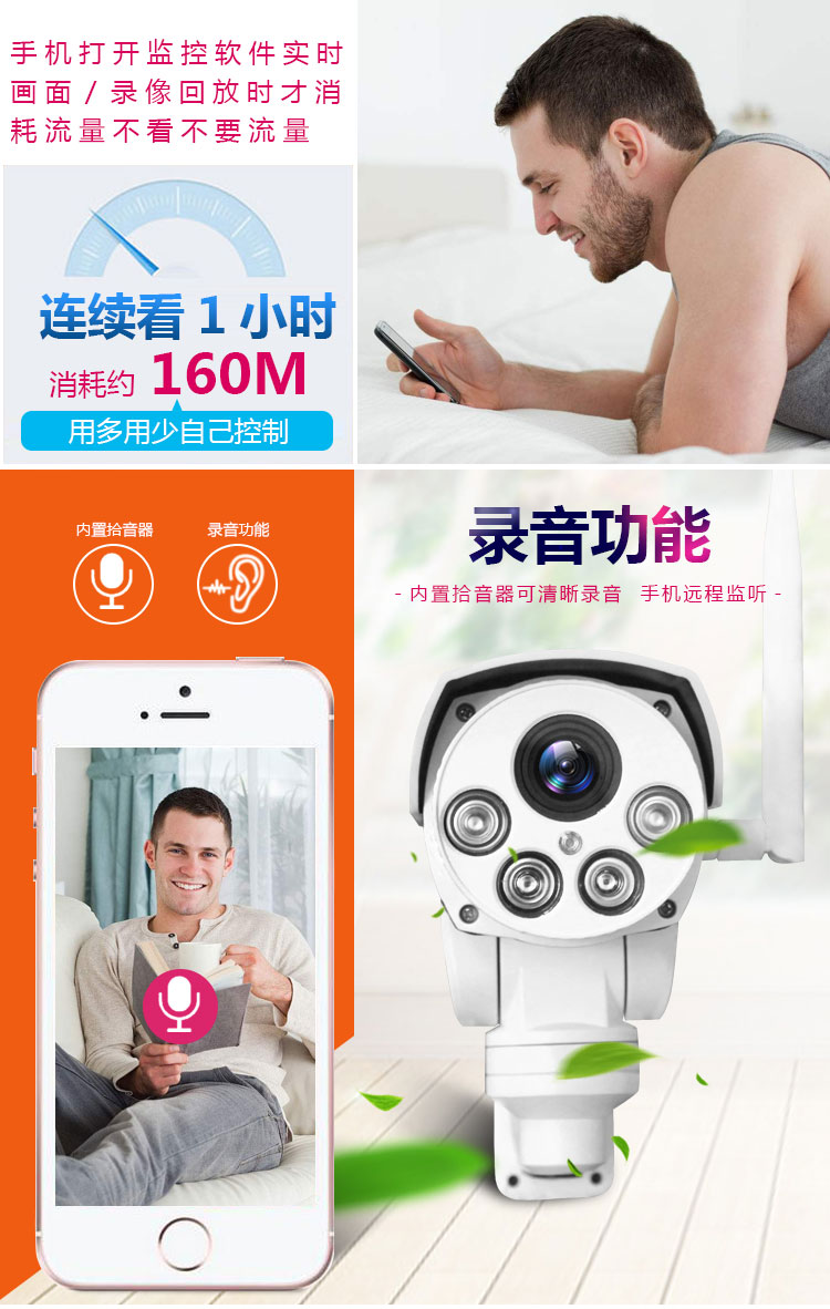 室外旋转云台摄像头4G流量远程监控摄像机(1002)