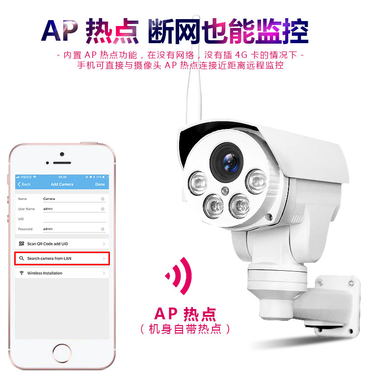无线网络摄像头4g摄像头太阳能电池摄像机(1001)