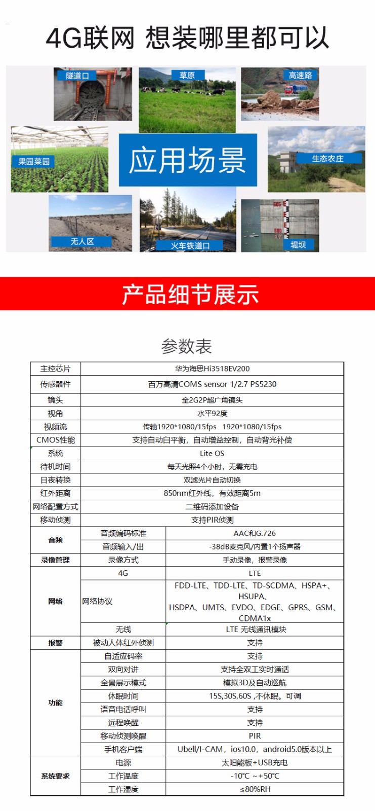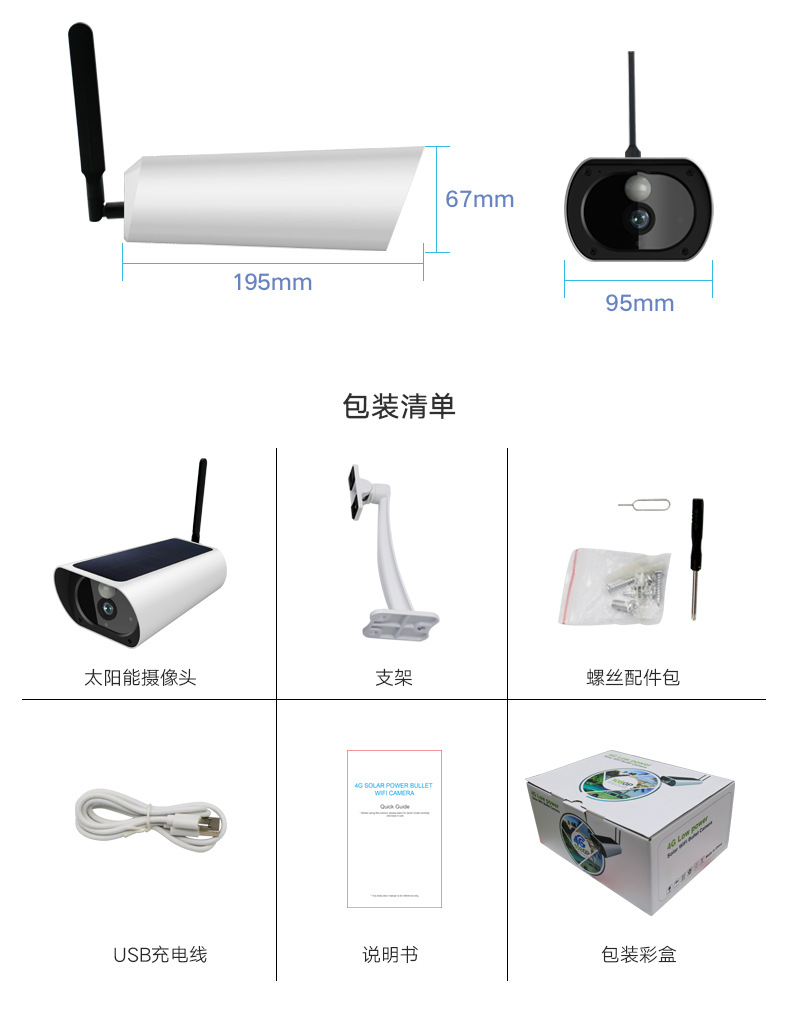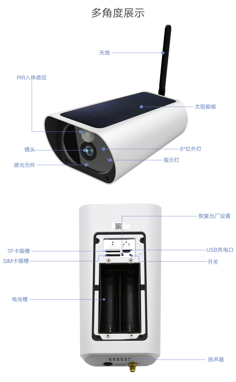 【描述】 无线网络摄像头4g摄像头太阳能电池摄像机